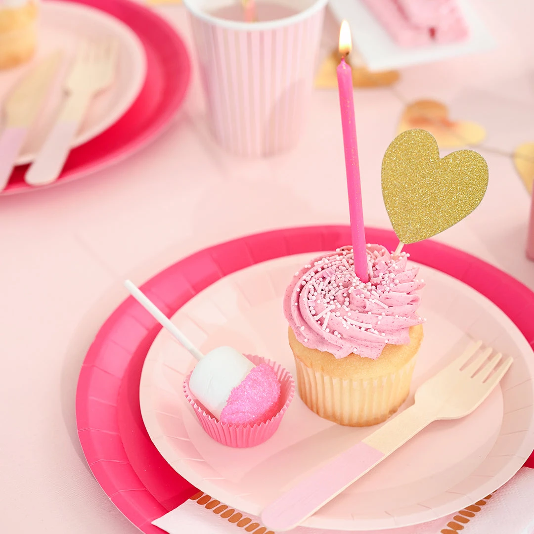No one wants to blow out boring candles. The varying shades of pink on these fun candles get an added pop with glitter. Includes 12 candles.