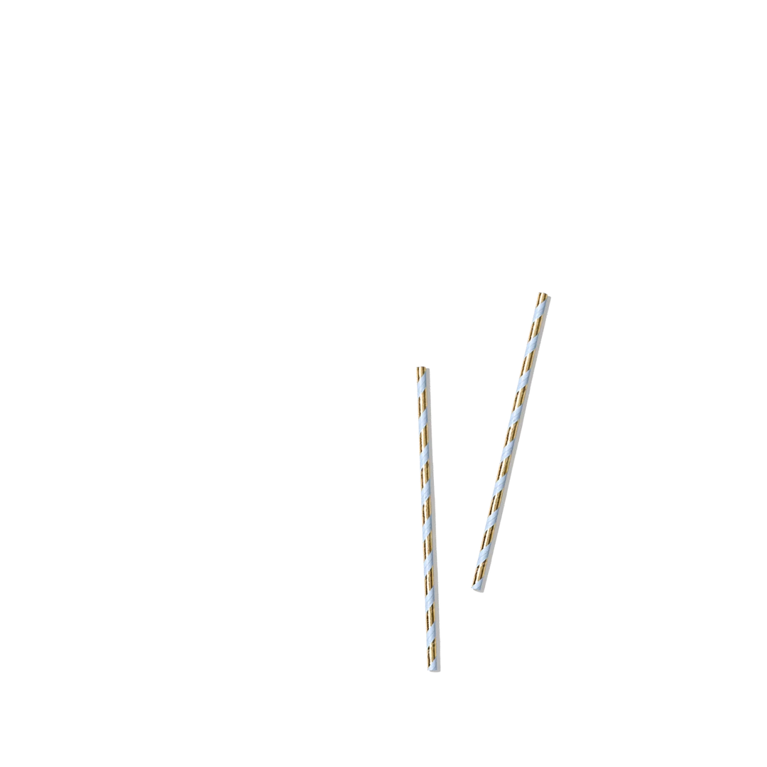 The easiest way to garnish a cocktail, these paper straws add interest to any beverage. The blue-and-gold design pairs perfectly with any of our gold-accented dishes and cups. Includes 25 straws.