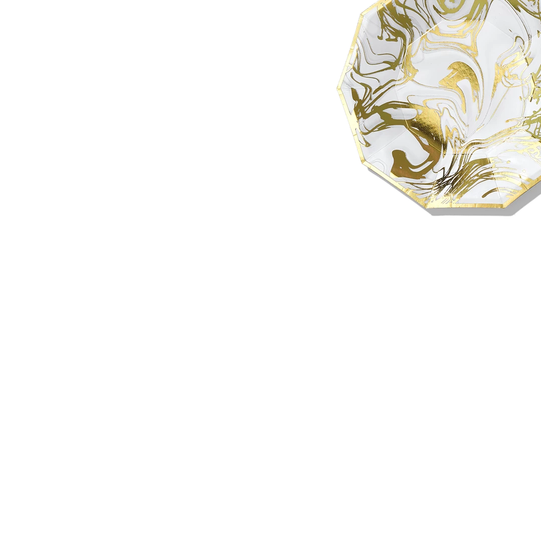 These plates feature a marble swirl so luscious and glossy, you might need to touch them just to be sure the ink has dried. The shiny gold finish adds a modern and elegant touch. Includes 10 plates.