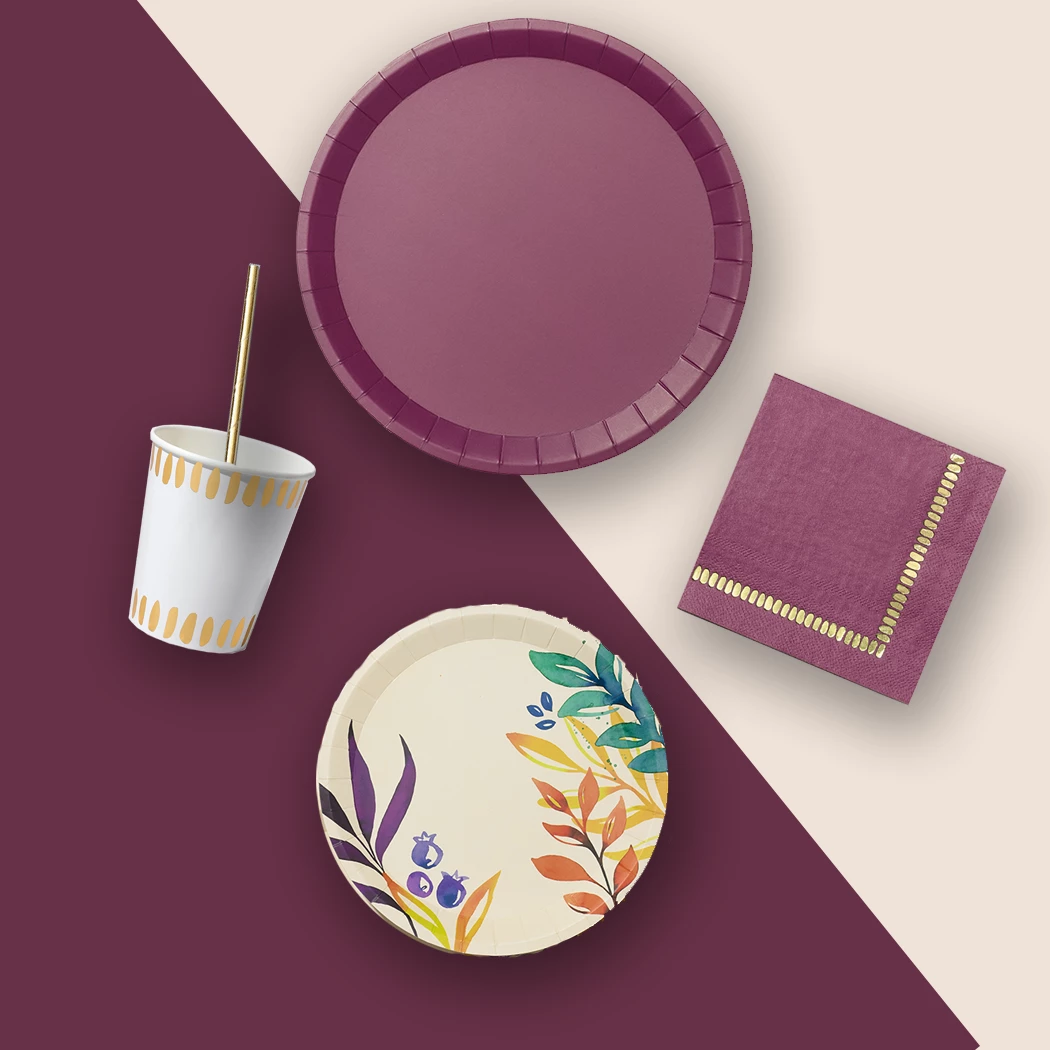 Includes 10 large plates, 10 small plates, 10 cups, 25 straws, and 25 napkins.