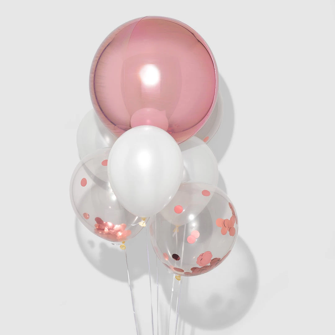 Hint: The large rose gold round balloon requires helium or a high pressure balloon pump to inflate.