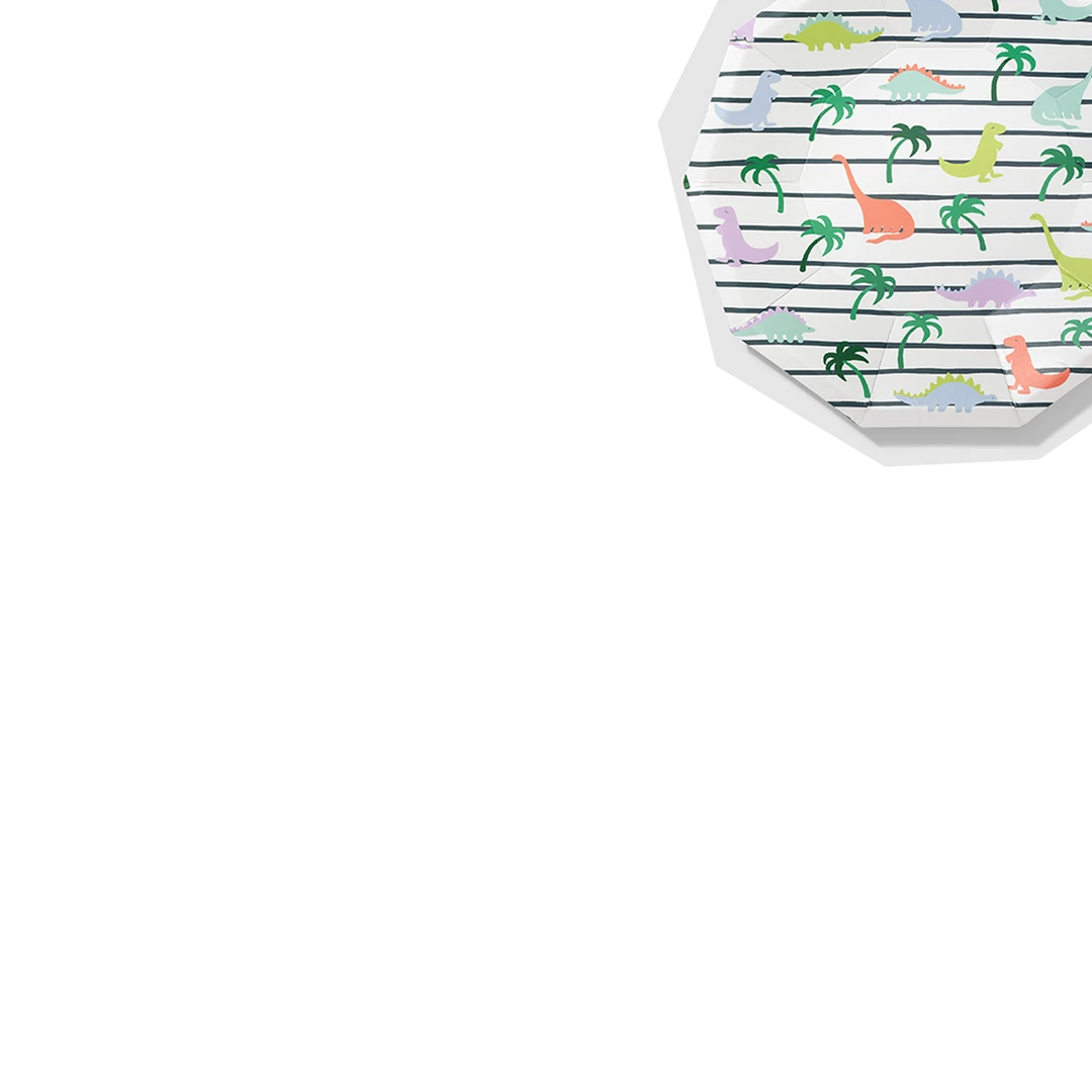 If there’s one thing dinosaurs knew how to do, it was eat. And your guests will want to do the same with these small plates. Decorated with kids’ favorite prehistoric creatures, the geometric plates are the ideal size for desserts and snacks.