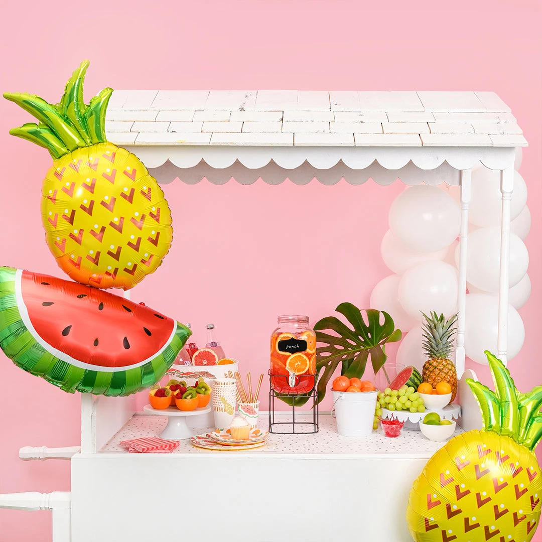 Our tasty Fruit Punch Balloon Bunch is the ideal way to set the vibe at a backyard barbecue or any other summer soirée. The chic balloon set includes a large foil pineapple and watermelon balloon. They are accented with five white balloons, which add contrast and volume to the display.