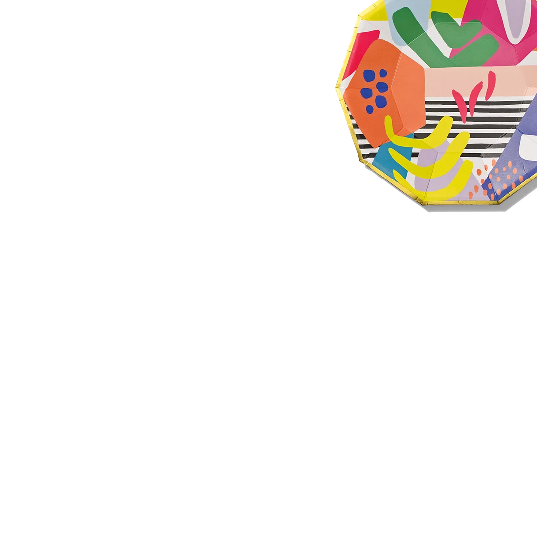 Our petite Matisse Small Plates are an elevated solution for everything from passed hors d’oeuvres to slices of birthday cake. Featuring our exclusive colorful graphic and a tasteful geometric shape, these paper plates are a work of art unto themselves.
