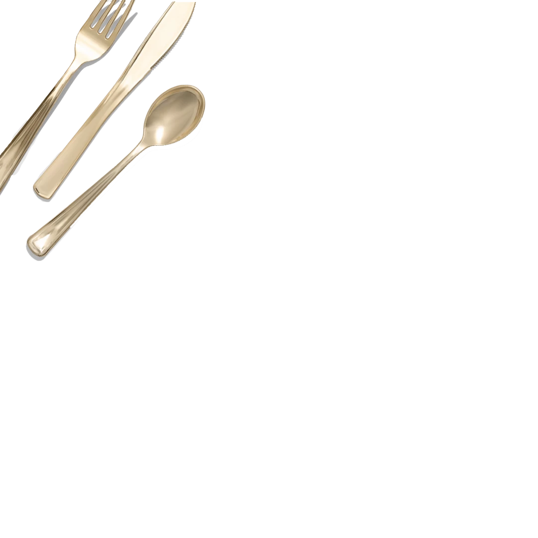 Silver spoons are overrated. We love this gold metallic cutlery, which adds an opulent vibe to any event. The plastic is heavyweight, so it has a nice feel in your hands and you don’t have to worry about it snapping or bending. This pack is enough for 10 guests (10 forks, 10 knives and 10 spoons). We’ll leave the guest list up to you!