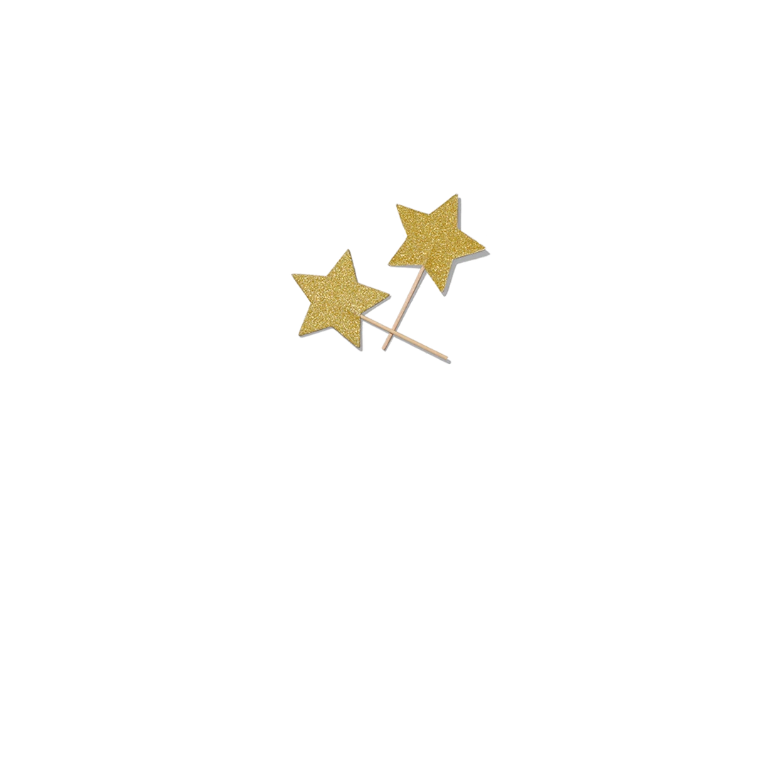 - Double-sided gold glitter stars
