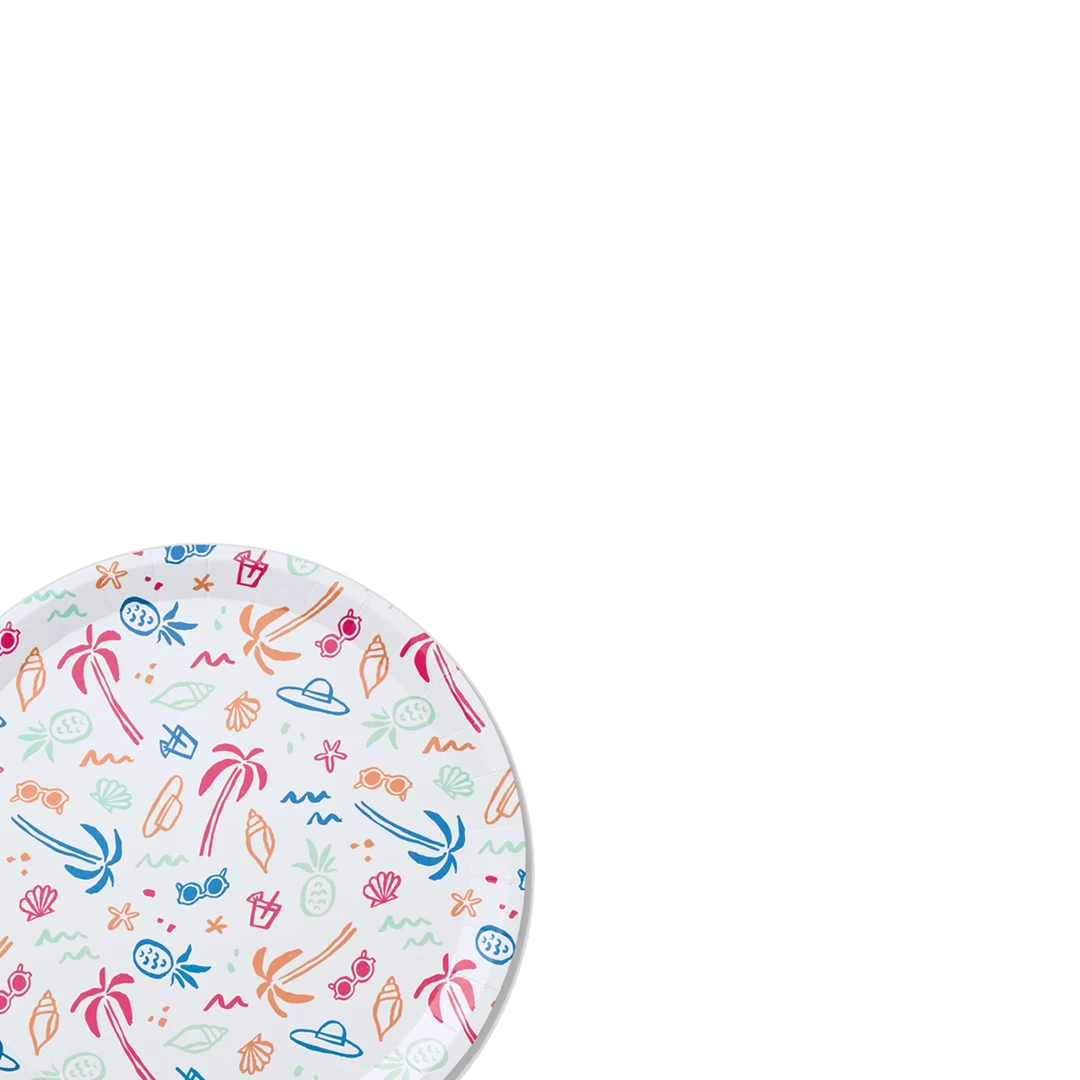 No matter the weather, our Beach Vibes Large Plates will put you in a sunny state of mind. The fun print on these large round plates adds a wonderful pop of color to any summer party, from clambakes on the beach to backyard barbecues.