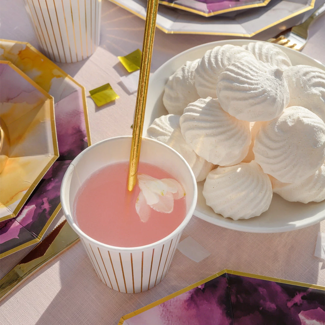 The easiest way to garnish a cocktail, these paper straws add interest to any beverage. The metallic gold has a super-shiny finish that pairs perfectly with any of our gold-accented dishes and cups. Includes 25 straws.
